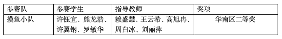 本次比赛对学生专业知识的掌握要求非常高,时间紧、任务重,参赛队员仅仅经过两个星期的集中培训,就取得华南赛区二等奖的好成绩,这与他们平日里争分夺秒地展开学习,以及在比赛过程中表现出来的团队合作精神、勇于克服困难的精神是紧密相关的。特别值得一提的是,比赛当天,恰逢天公不作美,教室外面狂风大作,风雨交加,教室内参赛学生却镇定自若地投入到比赛当中。当比赛进行到正午时分,中场休息之际,原已断网的教室又突然断电,各位参赛选手不得已提着电脑,冒雨蹚水匆匆忙忙赶去另一间可以临时供电的教室。然而,即便客观条件如此恶劣,学生们依旧有条不紊地继续参赛。我们另一支参赛队伍“熬鹰小队”(队员有唐宗华、江梓业、洪逸、陈希璇四名同学)也以一分之差与华南区三等奖失之交臂,实在令人扼腕叹息。通过此次比赛,参赛选手们表现出来的勇于克服困难、团结合作、努力拼搏的精神值得我们称道与学习。