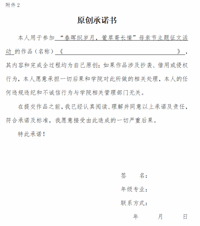 附件2:承诺书(命名:姓名+承诺书)注意:纸质版材料包含此附件。