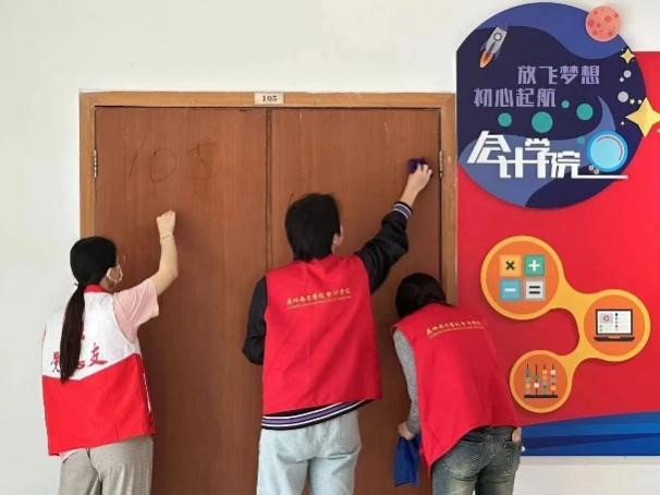 3月24日,太阳成集团tyc7111党总支学生第一党支部、太阳成集团tyc7111党总支学生第二党支部组织太阳成集团tyc7111团委学生会志愿者在5号教学楼开展清除残留贴胶物志愿活动。在同学们的共同努力下,课室和厕所的外墙焕发出新的光彩。