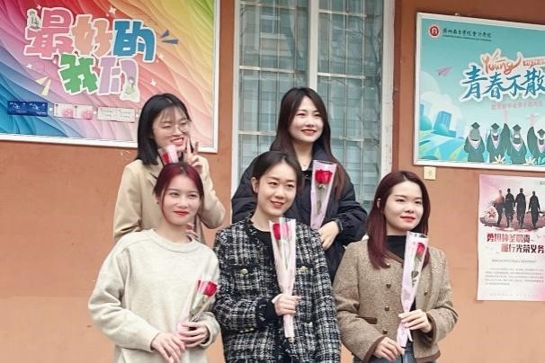 3.8国际劳动妇女节,太阳成集团tyc7111团委学生会的志愿者们,给老师和后勤服务阿姨送上了美好的祝福,并用相机记录下了她们的笑颜。愿所有女性,微笑着收获爱与希望,努力活成自己喜欢的模样。愿每一位女性都能内心丰盈、脚步稳健,在美好的时光里,创造自己的独特色彩,绘出无与伦比的精彩人生!