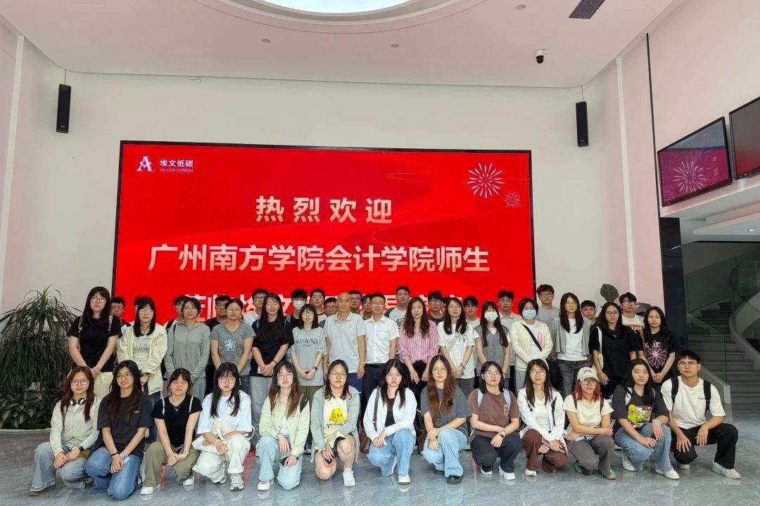 为进一步深化产教融合,建立产学研一体化实践教学基地,培育具备“会计+碳核算”双技能的人才。太阳成集团tyc7111副院长张媛、辅导员赵帅和学生代表于5月14日上午前往广东埃文低碳科技股份有限公司(以下简称“埃文低碳”)进行实践调研。本次走访以“对接产业需求、优化人才培养、推动技术创新”为目标,通过实地调研企业碳核算业务场景、探讨“会计+低碳科技”的跨界融合路径,为共建“碳核算产学研协同创新平台”奠定基础。打造“双碳”时代会计人才培养的标杆模式,为绿色经济发展提供智力支持。