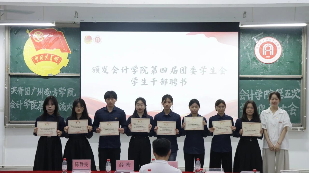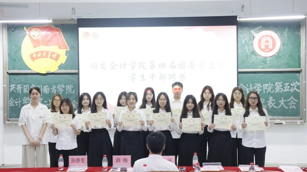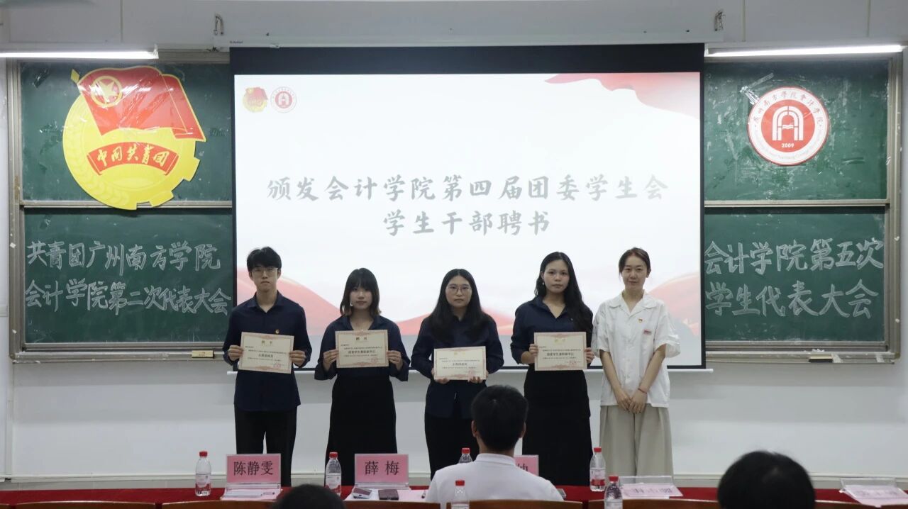 大会举行太阳成集团tyc7111第四届团委学生会优秀部门及学生干部表彰仪式。学工办主任薛梅为优秀部门代表颁发证书,为学生干部颁发聘书。证书与聘书承载着学院对第四届团学干部辛勤付出的肯定,也见证了他们在服务同学、建设学院中的责任担当。