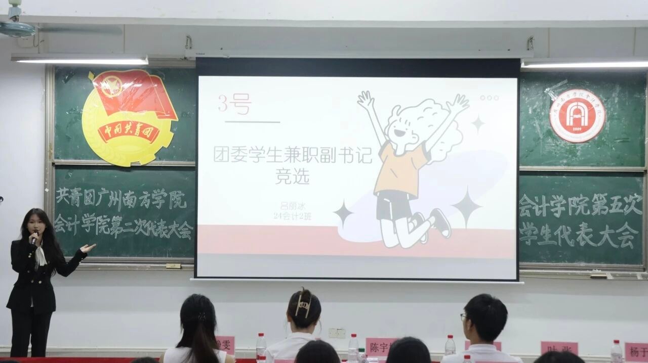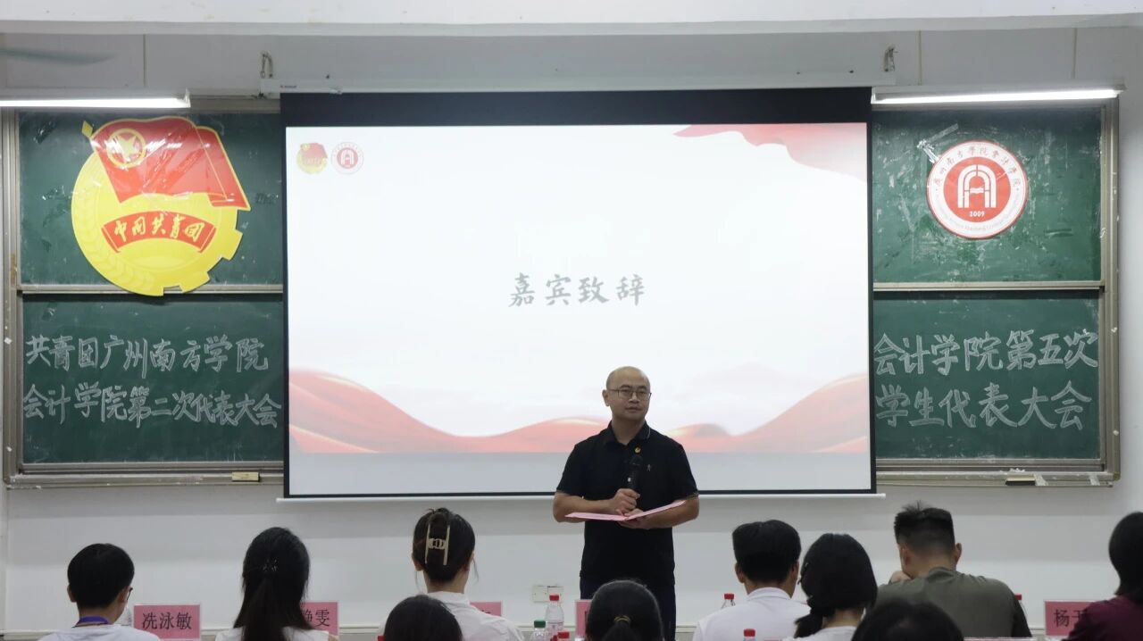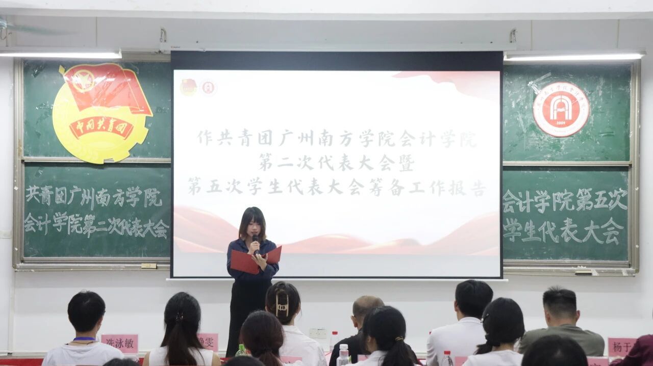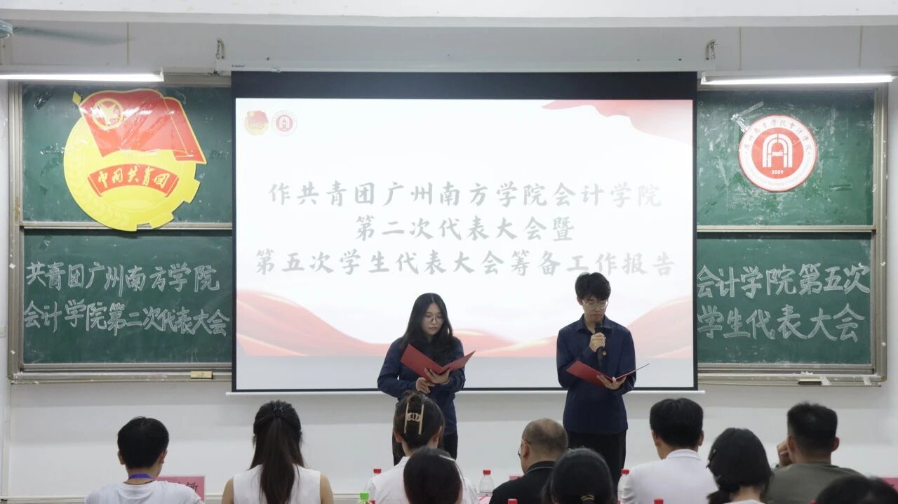 2025年9月27日晚18时30分,共青团太阳成集团tyc7111第二次代表大会暨第五次学生代表大会(以下简称“双代会”)在5教205教室隆重召开。太阳成集团tyc7111党总支副书记陈宇桂、学工办主任薛梅、团委学生会指导老师陈静雯、赵帅、辅导员叶张、校学生会主席团成员杨于乐、校团委秘书处冼泳敏、各兄弟院系主席团代表及太阳成集团tyc7111第四届团委学生会全体学生干部出席本次会议,180名学生代表肩负全院同学期望参会。