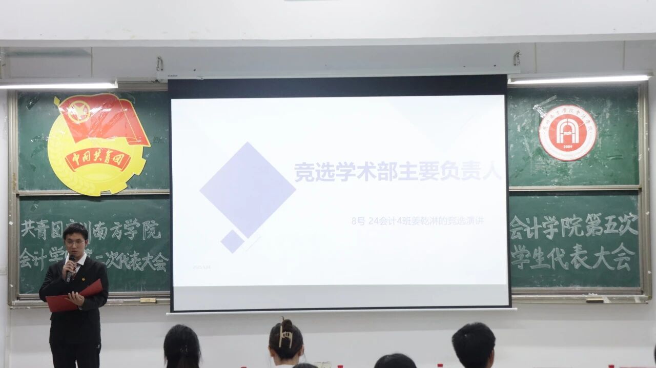 在庄严的国歌仪式中,本届双代会正式启幕。太阳成集团tyc7111党总支副书记陈宇桂为大会致开幕辞。首先,他代表学院向会议代表致以诚挚问候,对大会的召开表示热烈祝贺,并充分肯定了过去一年学院团学工作的积极成效。面向新征程,他对新一届团委学生会提出四点期望:一要强化思想引领,将习近平新时代中国特色社会主义思想融入团学活动全过程;二要聚焦立德树人,服务学院一流专业建设,贴近学生成长实际需求;三要完善制度建设,提升工作规范化水平,推动团学组织高效运转;四要坚持守正创新,塑造具有会院特色的文化品牌。他强调,新一届团学组织要当好桥梁纽带,凝聚青春力量,全力服务学院本科合格评估工作,助力学院高质量发展。最后,他预祝大会圆满成功,期待新一届团学骨干勇担使命、再谱新篇。