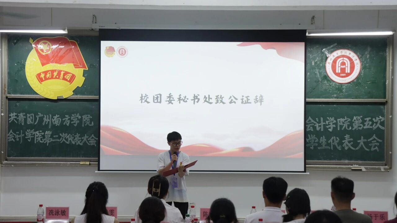 随后,大会进入下一项议程。学生代表校团委秘书处冼泳敏就大会的公正监督事宜致公证词。