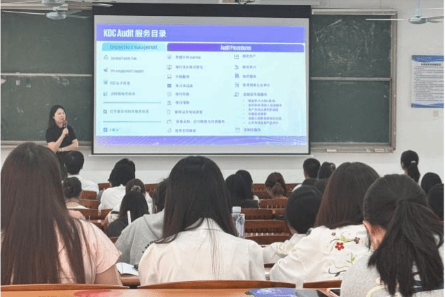 最后,人力资源部经理Carol也分享了在KDC的多元职业发展道路。从专业能力提升到职业技能培养,从企业文化到工作氛围,Carol用亲身经历告诉同学们要明确职业定位,做好长远规划,并鼓励大家在审计领域持续深耕。