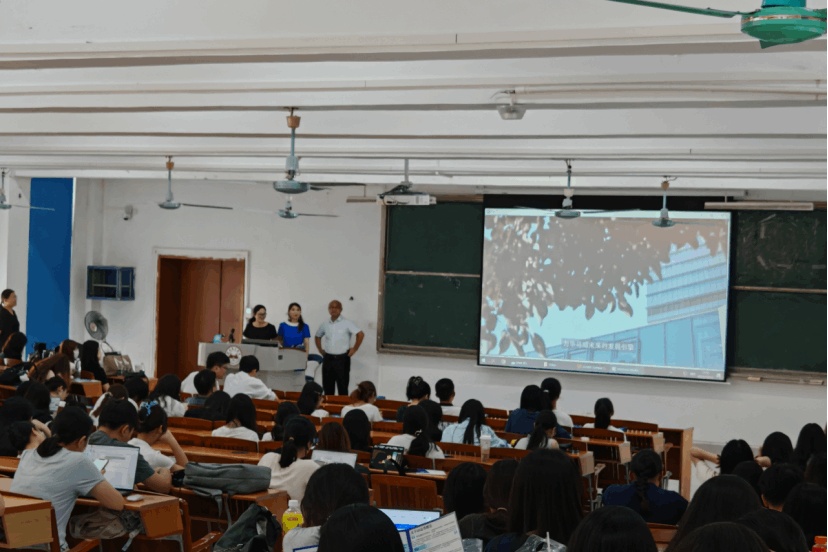 宣讲会伊始,陈宇桂老师作简短致辞,除了对到场嘉宾表示热烈欢迎外,同时也向同学们分享了与KDC多年来在不同领域的深入合作,希望能借助校园宣讲会的影响力,进一步向同学们介绍KDC的发展前景与热门岗位介绍。随后,人力资源部经理Bubble则以自身故事切入,向同学们介绍了员工心中的KDC,分享KDC是如何从标准化、智能化、人才发展等角度打造全方位的智能创新交付中心。