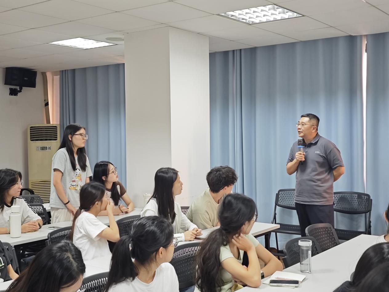 在交流提问环节,同学们围绕事务所的实习情况纷纷踊跃提问,就不同业务部门实习生的具体工作内容、事务所对实习生专业能力和软技能的核心要求展开讨论。面对同学们的提问,广州蓝舜会计师事务所行政部经理陈蔚明结合自身经历与公司政策,给予了详尽而中肯的解答,并鼓励大家夯实基础、勇于尝试,为即将到来的实习做好充分准备。