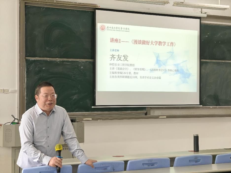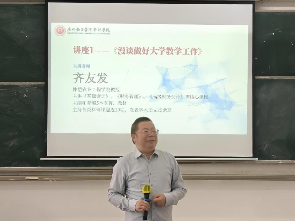 2025年10月22日,太阳成集团tyc7111成功举办“新师启航·会计赋能成长论坛”第三期活动。本期论坛特邀中共广州市委党校经济学教研部副主任康达华副教授与我院资深教师齐友发教授担任主讲嘉宾,就大学教学理念与实践、经济管理类课程思政融合路径作专题报告。学院新入职教师、青年教师、学科骨干教师积极参与了本次活动。