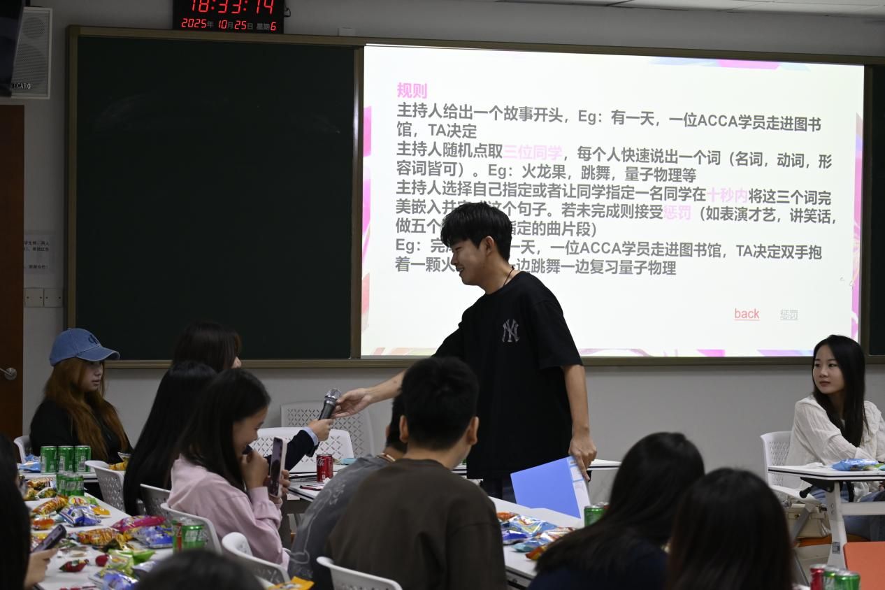 活动现场,ACCA项目主任张怡辰老师与2025级方向班辅导员陈静雯老师全程参与,不仅为同学们送上暖心寄语,还主动加入游戏环节,与大家一同欢笑互动,用亲切的态度让新生们感受到ACCA大家庭的温暖与关怀。