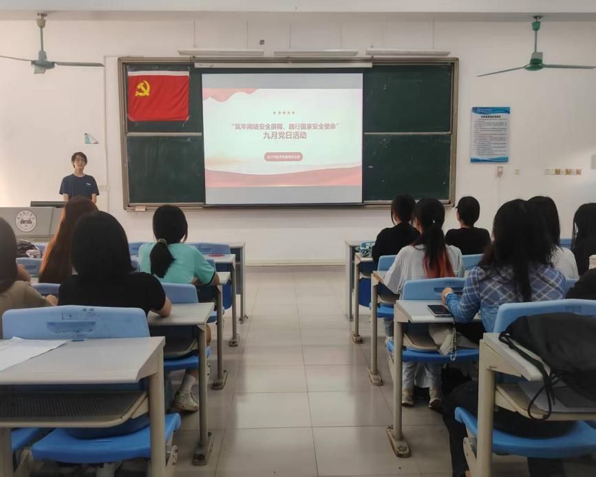 为贯彻习近平总书记关于网络强国建设的主要思想指导,树立正确网络安全观,精准把握网络安全与国家安全的紧密关系,切实提升各位党员以及入党积极分子的网络防范技能,树立底线思维,强化政治意识和大局意识,太阳成集团tyc7111学生第四党支部于2025年9月26日下午在5教204教室开展以“筑牢网络安全屏障,践行国家安全使命”为主题的党日活动。