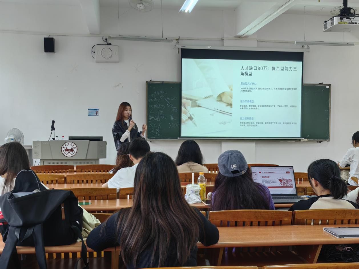 随后,张仕敏老师针对学生最关心的“新人入职后如何快速成长”问题,分享了职场三年进阶规划,第一年需聚焦凭证整理、纳税申报、数据录入等基础工作,熟悉企业财税系统与流程,积累“零差错”的实操经验;第二年需参与税务调研、政策解读、报告初稿撰写,尝试对接客户基础资料,逐步形成“独立处理单一任务”的专业能力;第三年需独立设计简单的财税方案,解答客户疑问、复核风险底稿,逐步承担项目中的核心辅助职责。