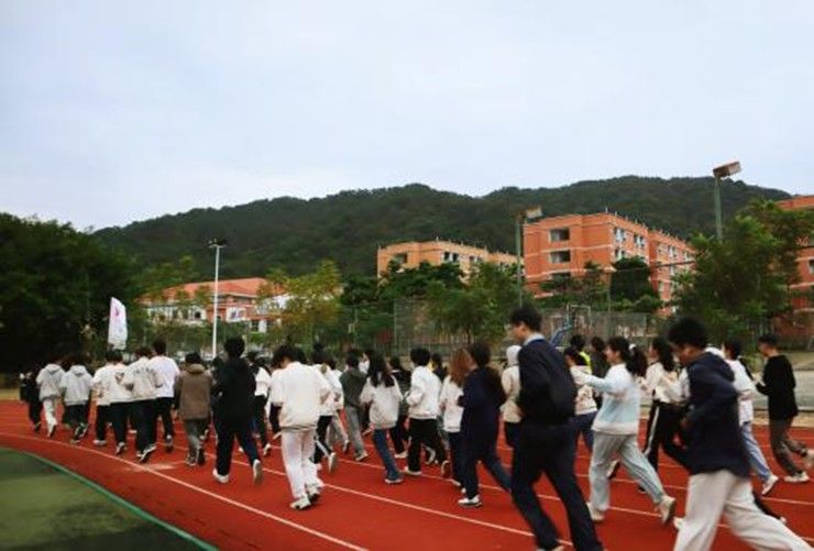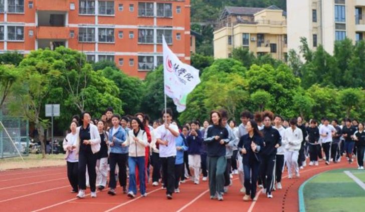 随着院旗迎风扬起,一声“开跑”令下,全体师生如潮水涌向前方,脚步声与旗帜一同飞扬,惊醒了整片朝阳。