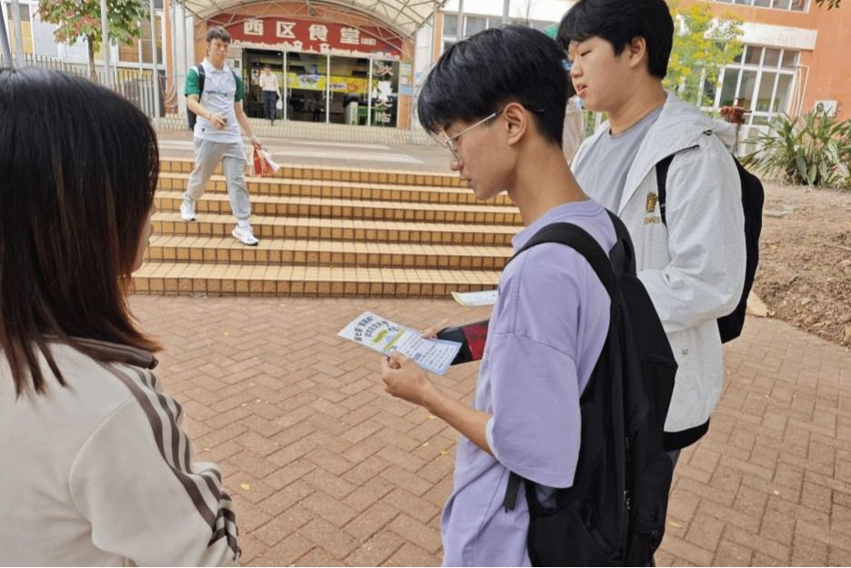 活动现场,精心布置的摊位围满了人,通过展板、宣传手册直观展示大赛的参赛要求、选题方向及活动形式等。你问赛制,我答细节,思想的火花不断碰撞,严肃的学术话题在轻松对话里活了起来。不少同学在交流中逐渐找到了自己的兴趣方向,也萌生了参赛的想法。