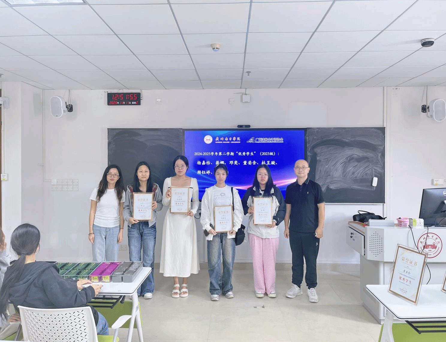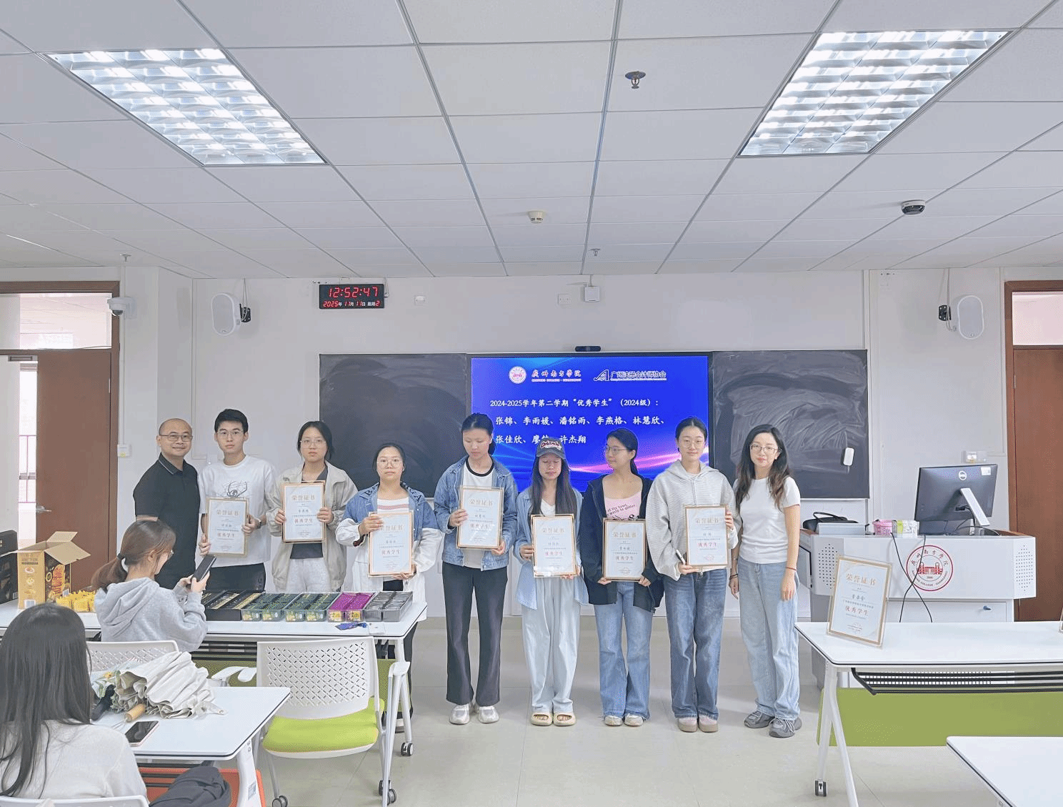 会议伊始,太阳成集团tyc7111党总支副书记陈宇桂老师宣读了2024-2025学年第二学期“注协班”2023级和2024级优秀学生的名单。随着每一个名字的响起,教室里响起了热烈的掌声,表达了对这些优秀学子的认可与祝贺。随后,陈宇桂老师与何沁蔚老师一同走上前台,为这些获奖的同学颁发了荣誉奖状,并在大家的见证下合影留念,记录下这光荣的时刻。