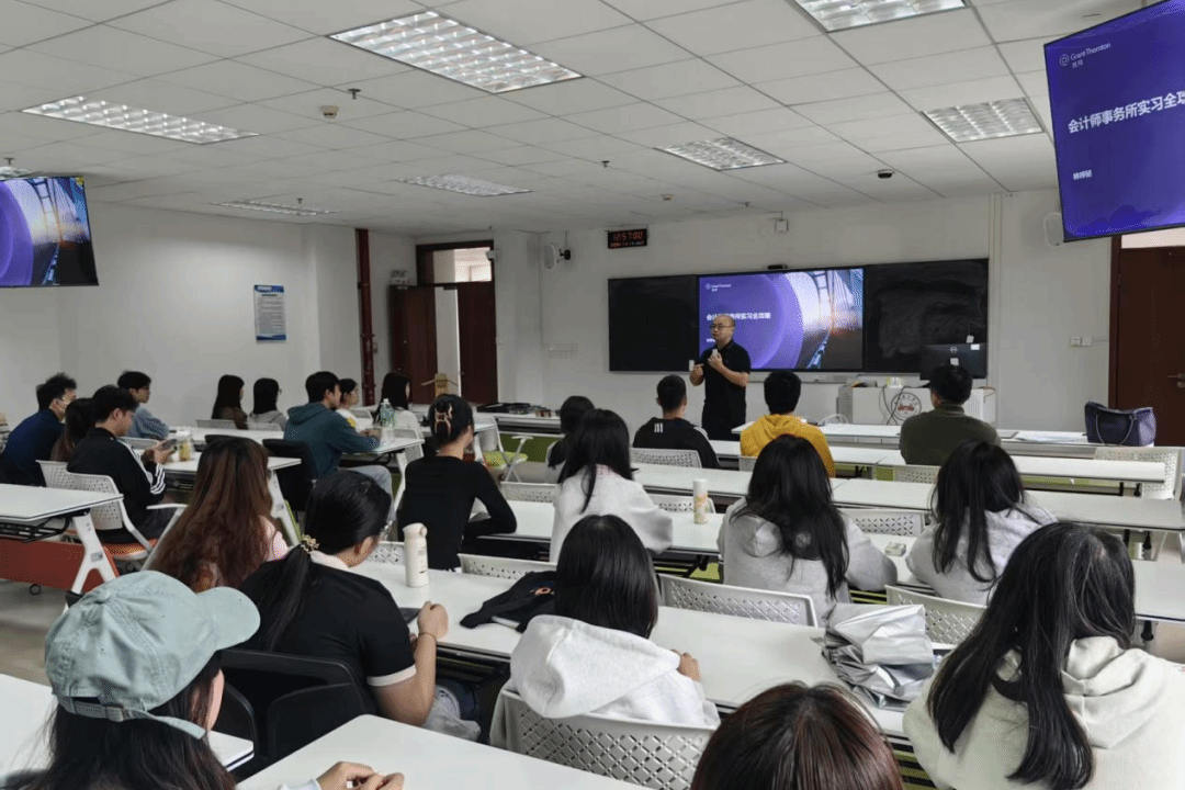 培训会上,林梓韧经理以“会计师事务所实习全攻略”为主题,从实习概况、专业行为规范、实习建议三大维度,为同学们带来了一场干货满满的精彩分享。