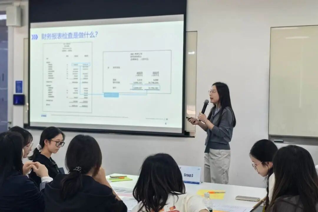 随后,审计助理经理高颖女士主持“财务报表检查大侦探”实战环节。各小组领取模拟企业财务报表,需在20分钟内排查收入确认、资产减值等潜在风险点。同学们迅速进入状态,运用ACCA课程所学的会计准则知识,分工核对数据、分析分录、讨论疑点,通过竞答方式提交发现的问题点。最终第4小组凭借“精准定位多处重大错报风险”的亮眼表现斩获第一名。高颖女士点评道:“同学们展现的专业敏感度超出预期,特别是对新收入准则的应用能力,体现了扎实的理论功底。”