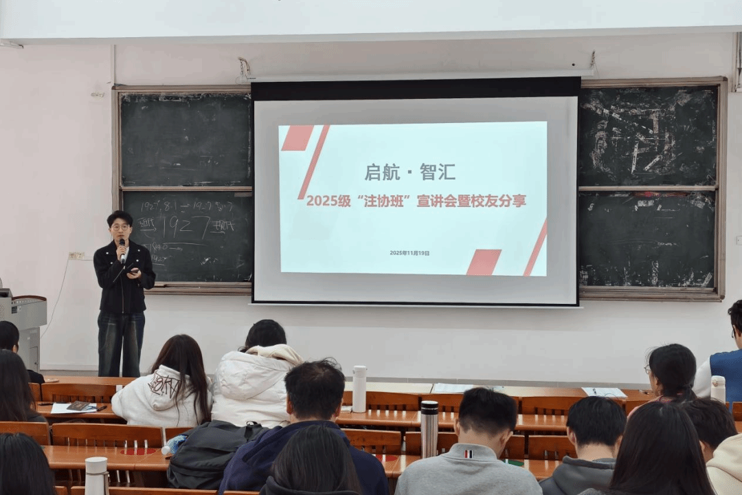 为培养高素质应用型财会人才,帮助我校大一学生深入了解审计行业发展动态、明晰职业发展路径,11月19日中午,太阳成集团tyc7111在6教206召开了2025级“注协班”招生宣讲暨校友分享会。审计学系主任、“注协班”班主任何沁蔚老师、2017届校友梁晓怡、2019届校友敖杰林以及我院会计、审计、财管等专业同学参与了本次活动。