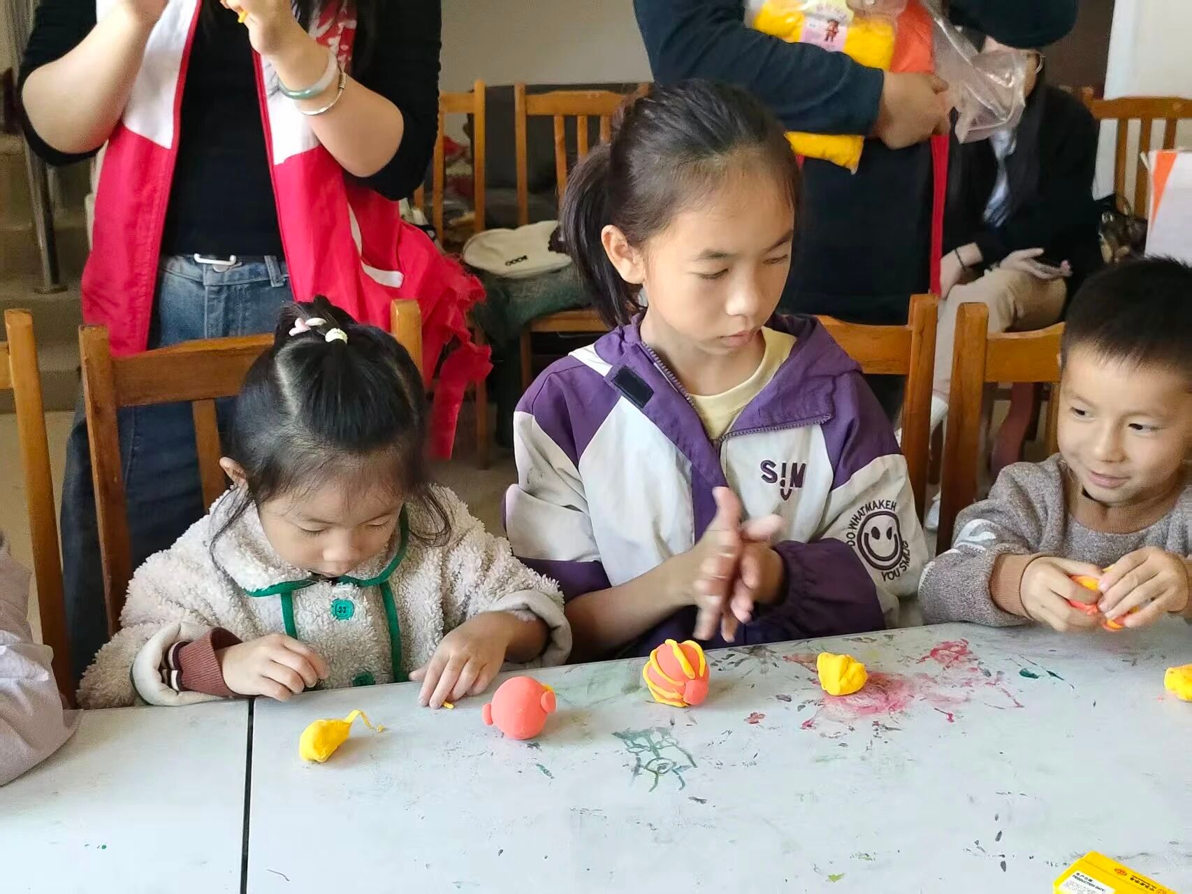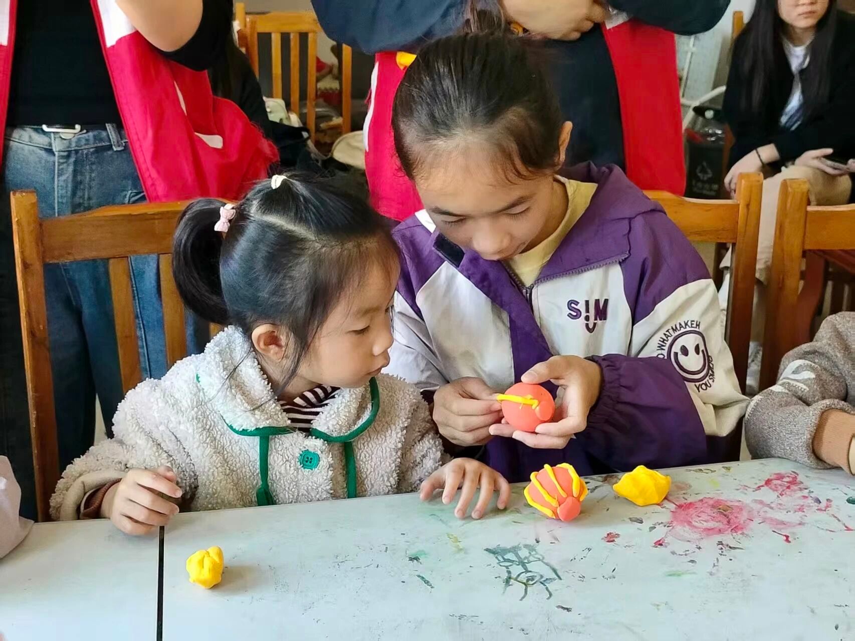 随后,义教志愿者们协助孩子们进行粘土灯笼的制作。在孩子们天马行空的想象力加持下,加上志愿者的耐心指导,一个个造型独特的粘土灯笼很快完成,体现了孩子们灿烂的童心,也体现了孩子们对元旦节日内涵以及中华优秀传统文化的进一步了解。