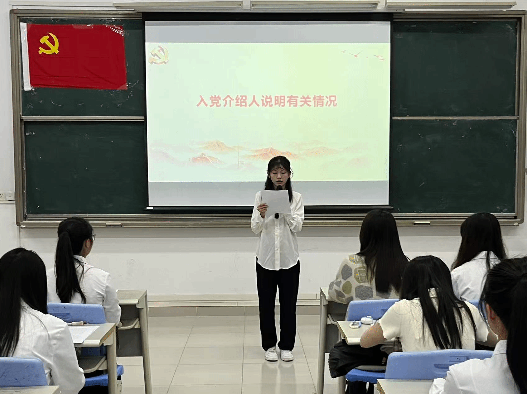 本项议程是对李霖芳等4名发展对象的入党问题进行讨论表决。发展对象依次上台作思想汇报,系统阐述个人思想认识、学习工作情况,全面展现对党的理论学习与入党决心。入党介绍人详细介绍了四位发展对象在思想、学习、工作及日常表现等方面的情况,对各发展对象在考察期间所做出的成绩和努力给予了肯定,并就其是否具备党员条件发表了意见。