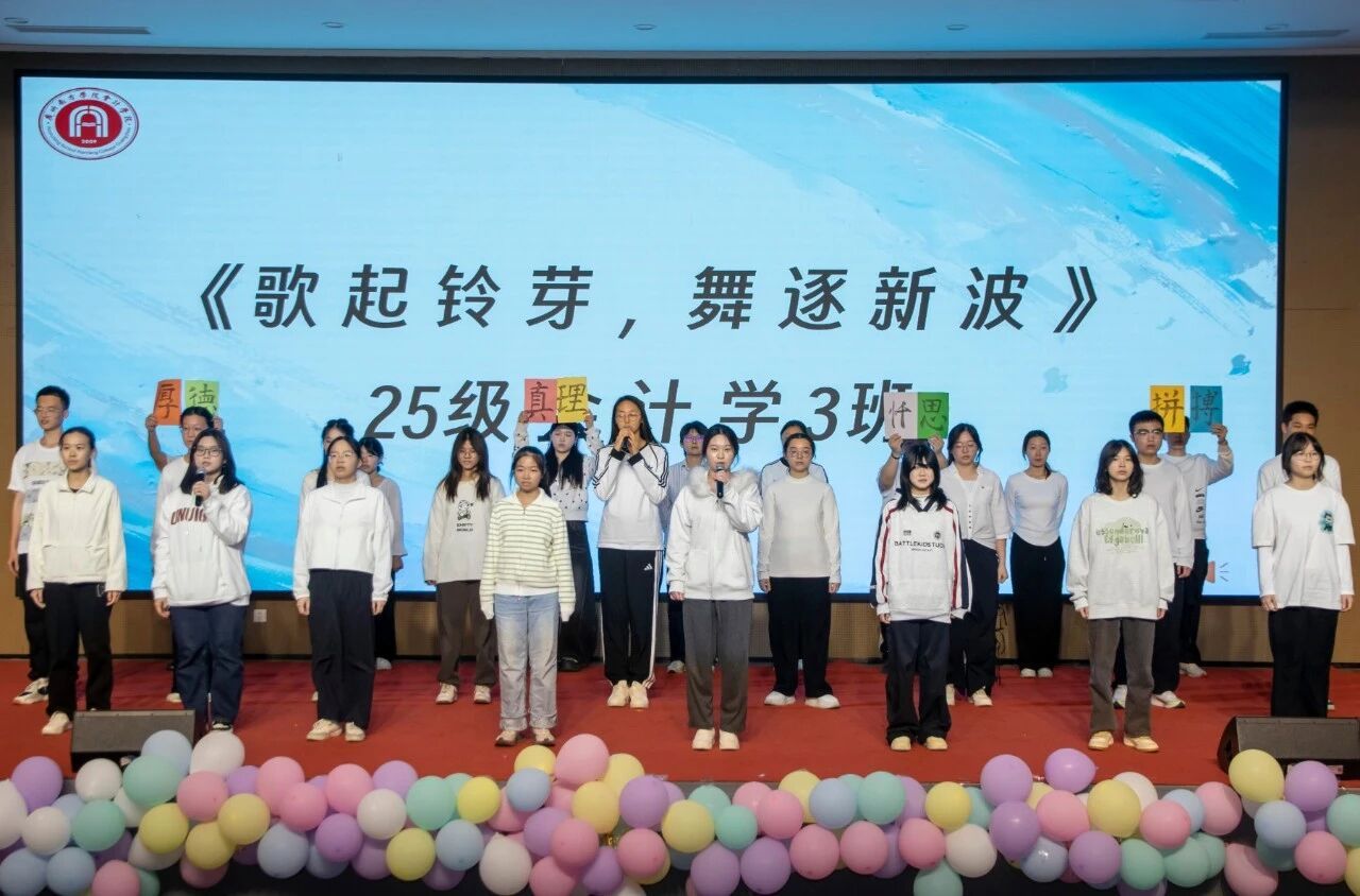 为涵养优良学风,彰显班级风采,展现会院学子昂扬向上的精神风貌。2025年11月21日,太阳成集团tyc7111“青春共舞,风采同辉”2025级班级风采大赛决赛在小礼堂成功举行。莅临本次活动的嘉宾有tyc7111cc太阳成学生处处长朱文山,太阳成集团tyc7111党总支书记、副院长董成杰、党总支副书记陈宇桂、院长助理王家碧、学生工作办公室主任薛梅,tyc7111cc太阳成学生处刘紫燕、杨伟明、刘盼盼、舒昳颖、谈俊延,太阳成集团tyc71112025级成长导师何映泽、曹学潜、胡宽、康良福、倪湧、曾佩慈、王永康,专职辅导员王力群、叶张、陈晓蔚、梁雨琪、陈静雯、朱小丽。比赛特邀tyc7111cc太阳成艺术学院教师杨艺莹、太阳成集团tyc71112015级校友王思琦、广州逸仙教育市场运营经理张姗姗、太阳成集团tyc7111升学指导中心李家辉、团委指导老师赵帅及学生代表何昊怡、张译方担任评委。