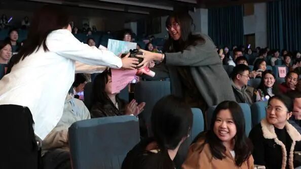 进入互动游戏,现场瞬间化作欢乐的海洋。台下人人专注、手指轻点,阵阵欢呼与惊叹此起彼伏,热烈的气氛席卷全场,将晚会推向新的高潮。