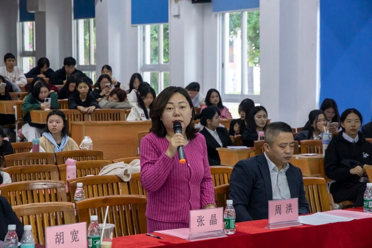 张晶老师对本次大赛进行了点评,她首先充分肯定了各位选手的出色表现,在现场展示中展现了会院学子良好的精神风貌与卓越的表达能力。她进一步指出,清晰的自我认知和可行的实施路径是职业规划的核心,并鼓励同学们将规划付诸行动,在实践中不断动态调整。最后,张晶老师寄语全体同学,希望大家以赛促学,将职业规划的理念内化于心,外化于行,为未来的职业发展奠定坚实基础。