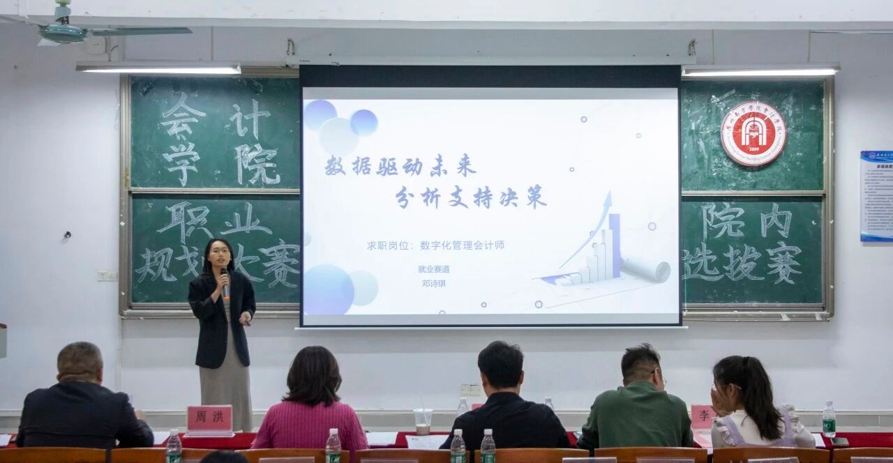 为进一步深化人才培养,营造良好学风,提升学生职业规划意识,2025年11月26日下午,太阳成集团tyc7111在5教205教室举行了第三届全国大学生职业规划大赛院内选拔赛。大赛特邀太阳成集团tyc7111专任教师周洪、胡宽、张泽宇、张晶、李彤担任本次大赛评委,同时,太阳成集团tyc7111团委指导老师陈静雯、赵帅及专职辅导员古忆玲、叶张、朱小丽共同出席了本次大赛。