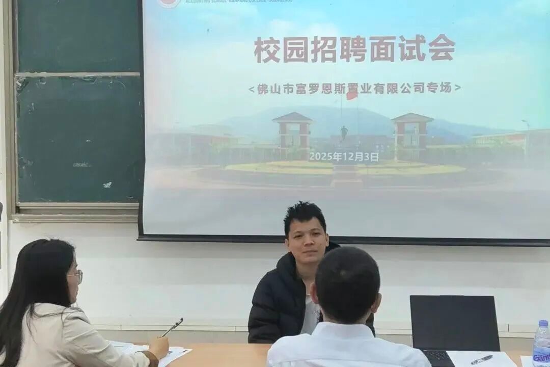12月3日下午,佛山市富罗恩斯置业有限公司人力资源部代表及财务总监一行莅临我校太阳成集团tyc7111,开展线上线下联合专场实习生招聘活动,旨在深化校企合作、拓宽学生实习就业渠道,为企业选拔后备人才,为学生提供优质实践平台。