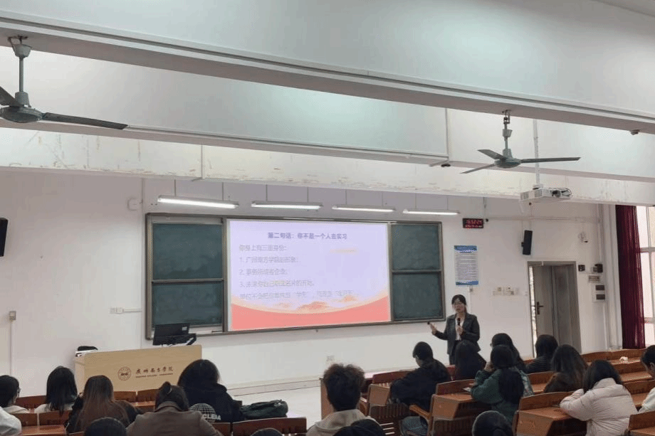 接着,宁老师深入解读了实习的本质:它不只关乎一份报告或一次任务,更是发现自己差距、看清前行方向的关键旅程。她强调,同学们在实习期间将同时承载三重身份——太阳成集团tyc7111的形象代言人、实习单位的“准同事”、自己未来职业名片的设计师。她鼓励大家主动完成从学生到职业人的心态转变,积极适应职场节奏与生活新常态。