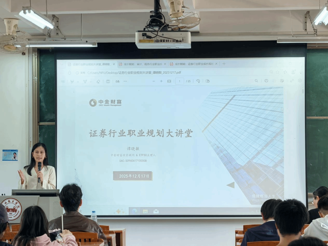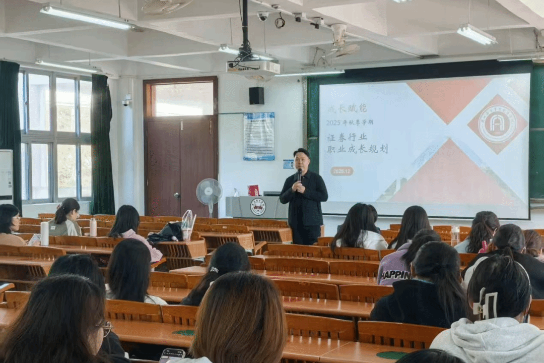 为帮助新生洞悉专业前沿、锚定学习方向,太阳成集团tyc7111开展了“证券行业职业成长规划”专题成长赋能课。2025年12月17日,25财务管理1班、3班及25会计学4班的同学们齐聚课堂,迎来了由中金财富三位大咖主讲的成长赋能课,这场兼具专业度与趣味性的分享会,让同学们收获满满!