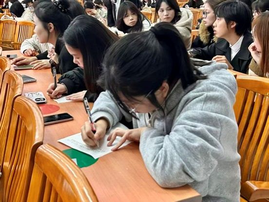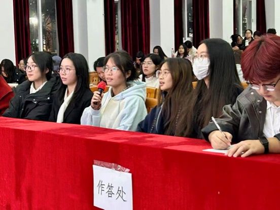 比赛第三部分“共笔生花”共分为撰写与展示两个环节,各队伍围绕“中国共产党的革命道路与自我革新”主题,在限定时间内分工撰写党史论文。随后,代表队代表上台阐述论文核心观点,从理论梳理、现实关联到青春践行,思路清晰、论述有力。评委与观众从思想内容、逻辑结构等方面进行综合评议,确保评选专业公正。