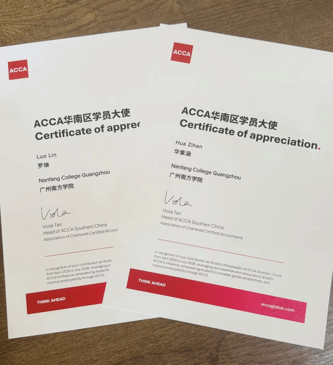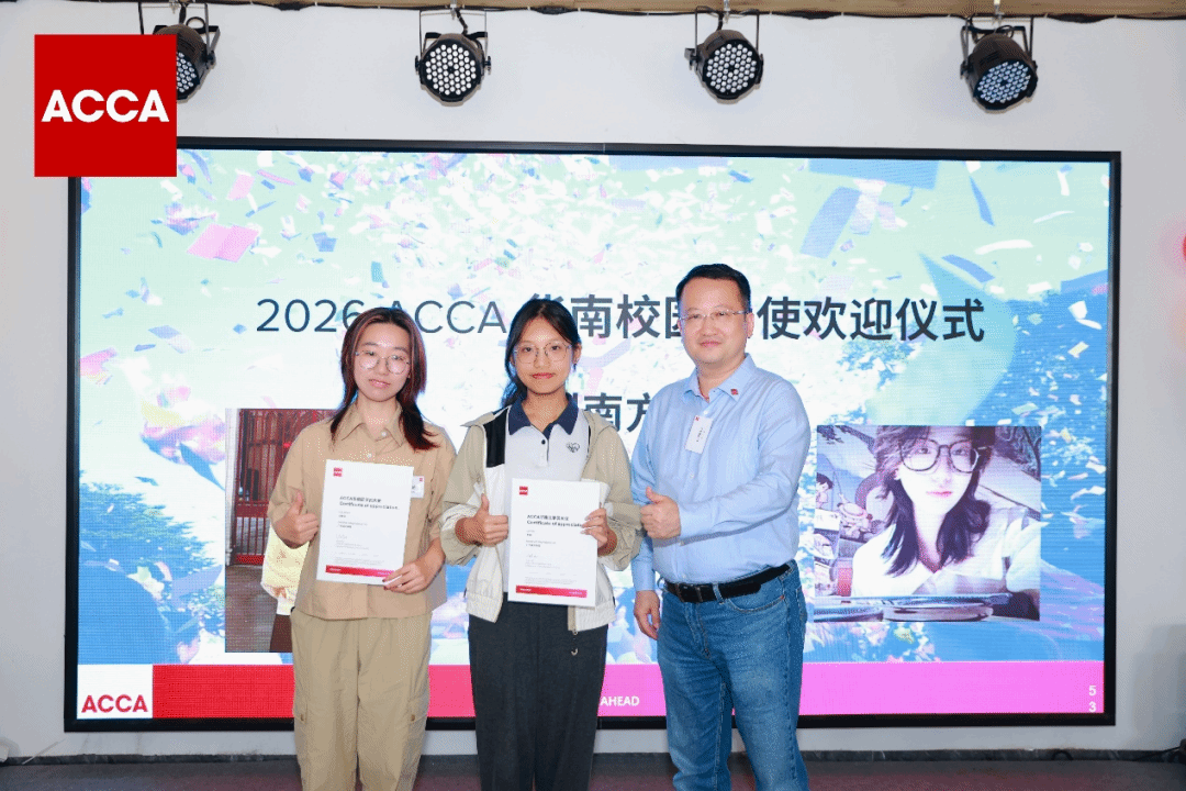 活动期间,ACCA导师为新一届校园大使正式举行聘任仪式,我院罗琳、华紫涵两位同学作为新任大使,参与了此次聘任环节。