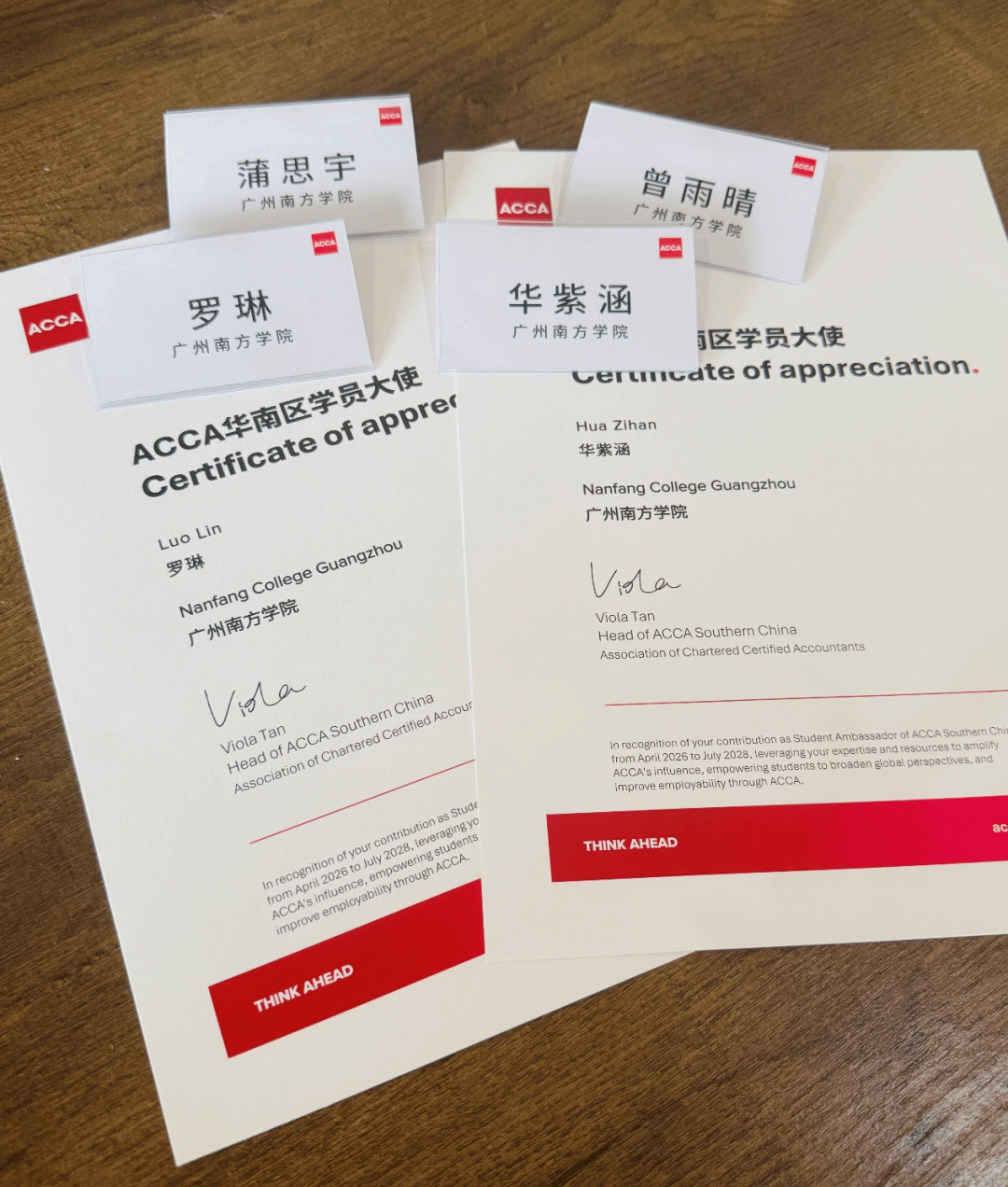 晴日暖风生麦气,繁花似锦映韶华。2026年 ACCA 校园大使见面会暨新一届校园大使欢迎会顺利举行,tyc7111cc太阳成应邀参加本次活动,太阳成集团tyc7111ACCA方向班曾雨晴、蒲思宇、罗琳、华紫涵四位同学作为学院代表参会,与多所高校学子围绕专业学习、备考经验及职业发展深入交流,期间我院ACCA团队凭借出色表现斩获团体三等奖,充分展现了太阳成集团tyc7111ACCA方向班的综合实力与良好风采。