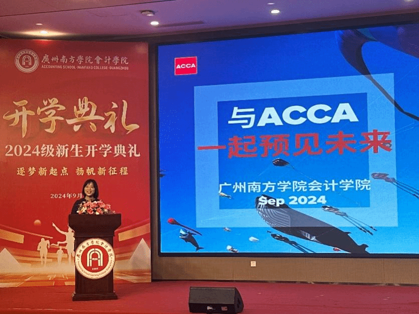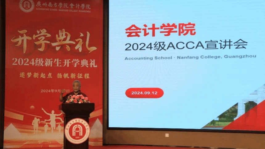 紧接着,ACCA广州办公室李艳婷老师以专业的视角为新生们详细描绘了学习ACCA的独特体验与广阔前景。她强调,ACCA作为全球领先的财会资格认证体系,其广泛的国际认可度与深厚的行业影响力,为学员铺设了一条通往国际化财会精英的道路。同时,李老师提到ACCA的雇主会员涵盖各个领域并经常开展各种活动,有更多机会与众公司的高管深入接触,为学员提供了更广阔的发展平台和更好的就业优势。