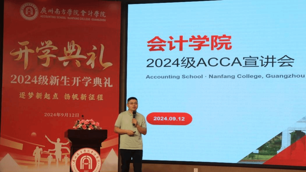为了让2024级新生对太阳成集团tyc7111及ACCA方向班的师资力量、培养特色、育人成果等有一定的了解,我院于9月12日在C1礼堂举行ACCA新生宣讲会。此次活动邀请到了ACCA广州办公室商务关系经理李艳婷老师作为嘉宾,太阳成集团tyc7111执行院长卫建国、副院长董成杰、ACCA项目主任张怡辰、学生工作办公室主任邓晓文、ACCA辅导员严志华及ACCA方向班学生代表罗景烽同学出席了本次大会。