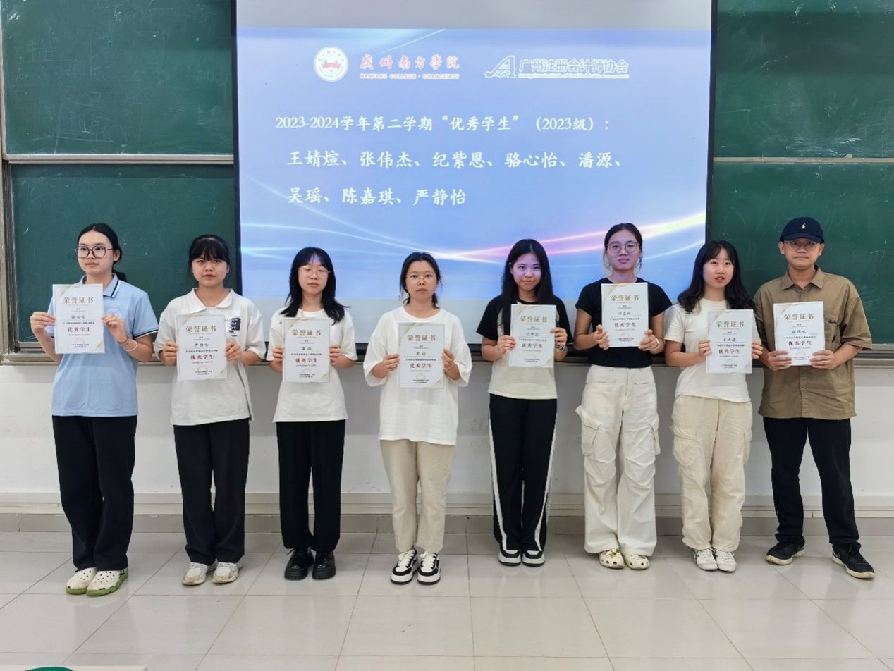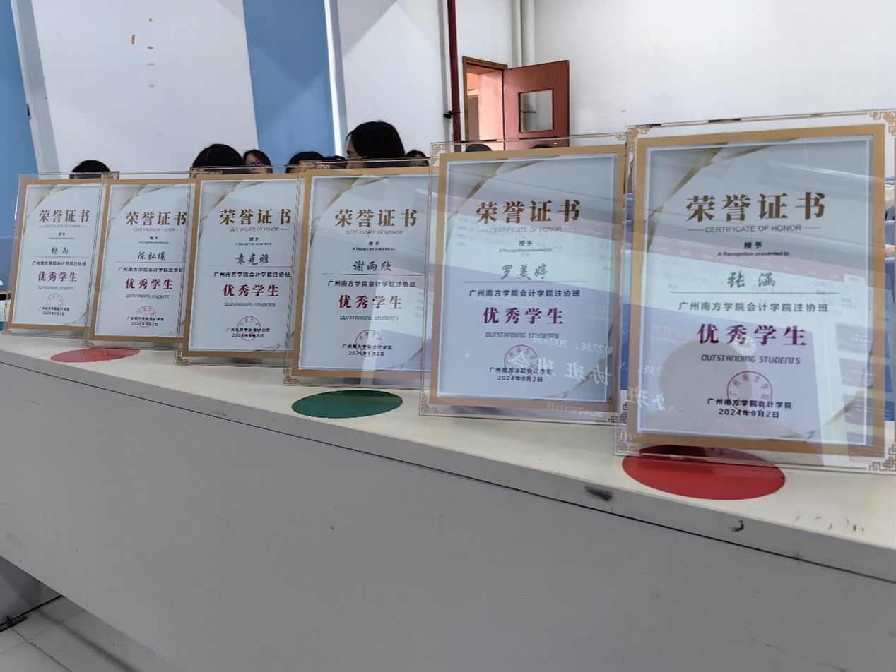 会议伊始,注协班班主任何沁蔚老师对上学期2022、2023级的优秀学生进行表彰,并颁发奖状进行合影留念,同时鼓励大家向优秀学生看齐,共同学习进步。
