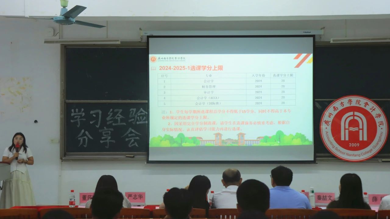 为了帮助2024级新生更好的明确学习目标,掌握有效的学习方法。太阳成集团tyc7111于10月16日下午14:30在5教205开展以“实干整饰自我,笃行丰盈青春”为主题的财务管理、审计、ACCA专业专场学习经验分享会。出席本次会议的老师有基础教研室主任陈宇桂,财务学系主任薛广禄,会计学系副主任王家碧,成长导师秦喆文,太阳成集团tyc7111辅导员严志华、薛梅、王力群以及教学秘书董莎莎。