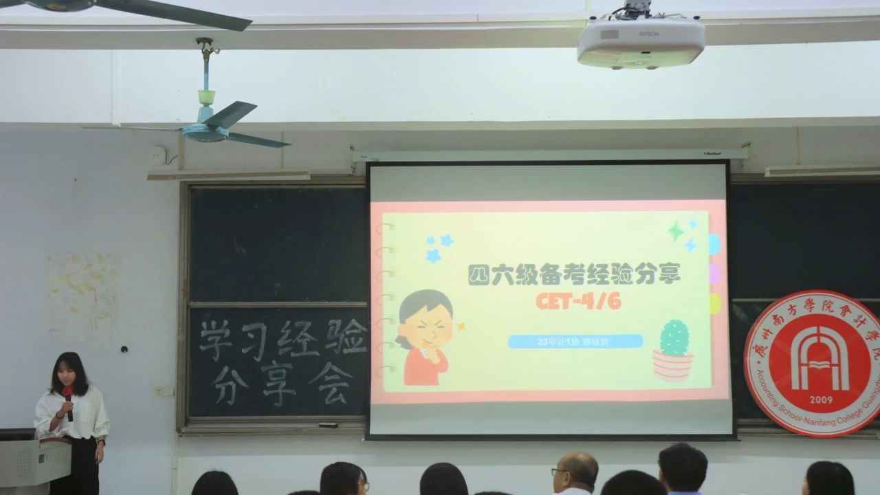 在优秀学生代表经验分享环节,23级审计学郭钰妍从四六级的含义、通过的必要性以及备考方法三个方面进行了详细的四六级备考经验分享。23级会计学杨舒越进行学习心态分享,以“尝试”、“坚持”、“选择”、“犹豫”、“享受”、“沟通”六个关键词总结了调整心态的方法。23级审计学骆心怡从平时学习和期末复习两个方面分享了应对不同科目的具体学习方法。三位学生代表们围绕备考策略、心态调整及学习方法,分享了各自的真知灼见,为新生们的学业之路铺设了坚实的基石。