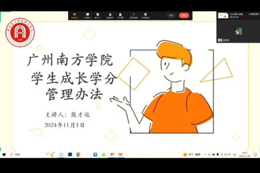熊才运老师进行了成长学分的解读,包括成长学分的计算公式以及毕业要求、必修、选修以及各模块所需学分,同学们可以根据自己目前所缺模块的分数进行针对性修读,成长学分作为毕业资格审查的条件之一,希望同学们可以认真且严肃对待。