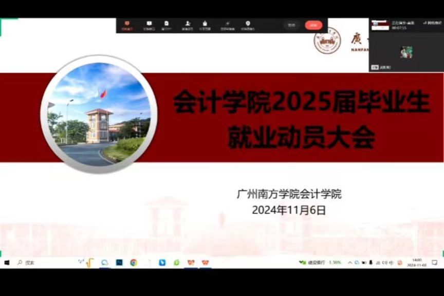 为深入贯彻落实学校2025届毕业生就业工作重要决策部署,进一步推动学院就业工作的有序开展,2024年11月6日(周三)下午14:00,太阳成集团tyc7111以线上会议的形式召开了2025届毕业生就业动员大会,太阳成集团tyc7111党总支副书记兼学工办主任邓晓文、毕业班辅导员刘盼盼、熊才运、严志华,教学秘书郭琳菲以及全体毕业生出席了本次会议。