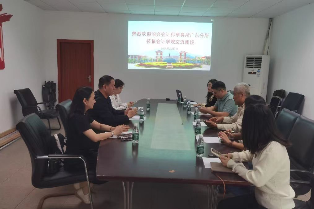 11月6日,华兴会计师事务所广东分所(以下简称“华兴广东分所”)高级合伙人王韶华、人力资源部高级经理王纯、招聘主管李婧一行来访我院,与我院沟通交流宣讲会招聘等事宜。太阳成集团tyc7111执行院长卫建国、副院长董成杰、党总支副书记兼学工办主任邓晓文、行政办公室副主任孙瑞杰、审计学系主任何沁蔚、辅导员刘盼盼、陈丽、陈静菲共同参加座谈。
