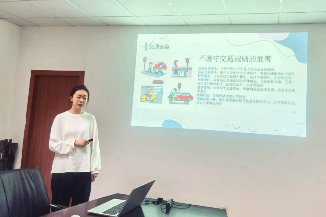 薛梅老师强调要增强安全意识,认识到各类安全隐患和危险行为,提高自我保护能力。在遇到突发情况时如何冷静应对,采取正确的自救和互救措施。鼓励学生关注自身和他人的安全,树立安全意识和责任感。