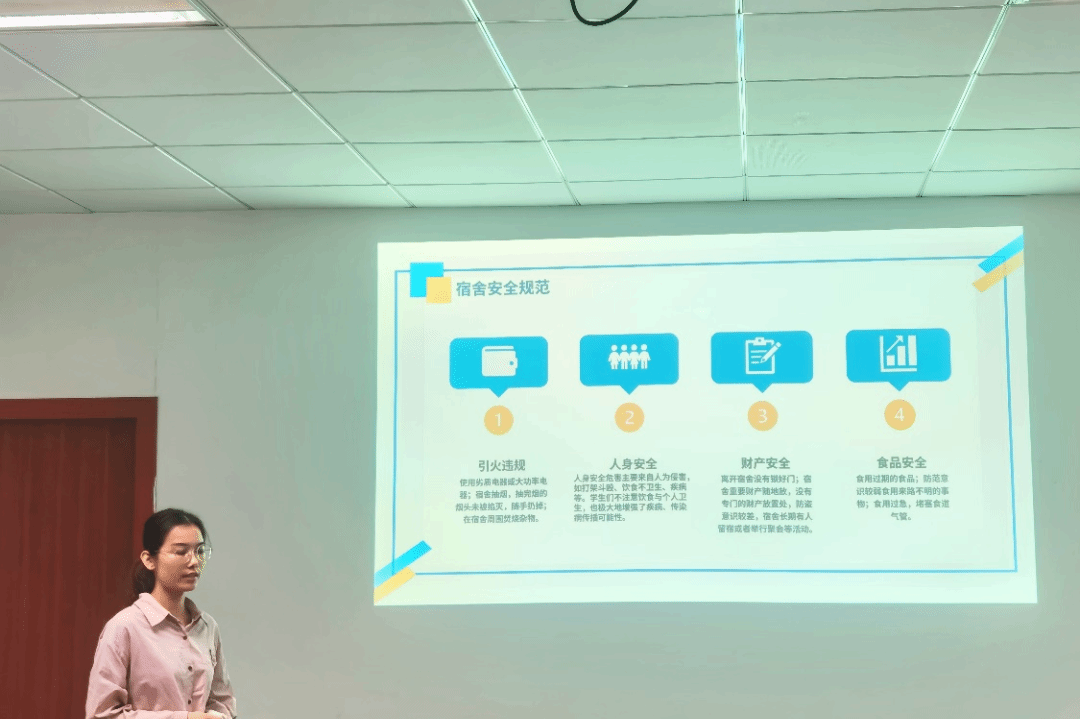 陈丽老师表示宿舍是大家日常生活和学习的重要场所,良好的宿舍行为规范有助于维护宿舍的和谐氛围。宿舍生活不能使用大功率电器、不能私拉电线等,应定期打扫宿舍,爱护宿舍。收到不明链接或短信要提高警惕,学会辨别诈骗信息的真伪,如电话、短信、邮件等。遇到可疑情况,应及时向辅导员或学校保卫处报告。
