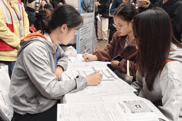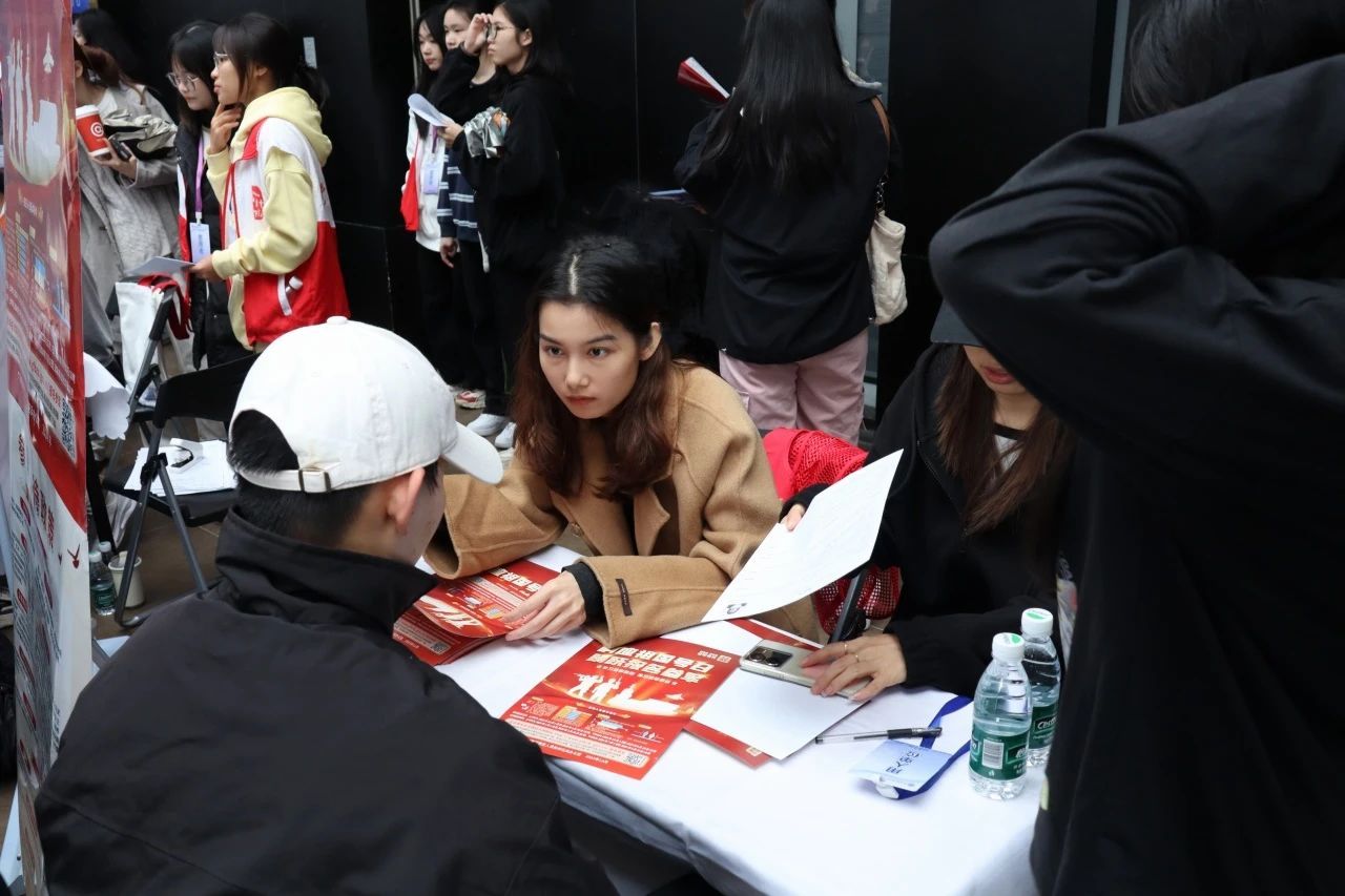招聘会现场气氛热烈,人头攒动,吸引了近400名同学参加。同学们手持精心准备的简历,积极与用人单位交流,展现出了较高的求职热情和良好的专业素养。用人单位也表现出极大的热情与诚意。参会企业纷纷亮出自家的“金字招牌”,通过精美的宣传册、生动的展示板以及招聘代表的详细介绍,向同学们全面展示公司的业务范围、企业文化、薪酬福利以及职业发展路径等信息,力求吸引更多优秀人才的加入。
