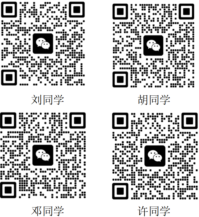 如有疑问,可以扫描二维码进咨询群或添加以下四位同学进行咨询: