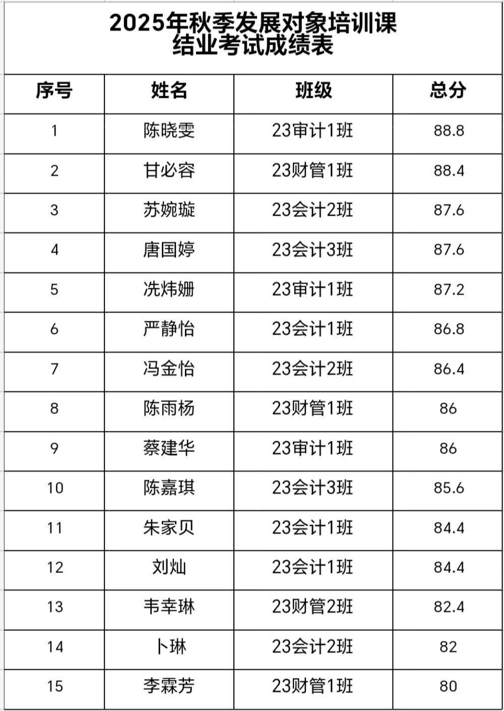 太阳成集团tyc7111党总支2025年秋季发展对象成绩公示名单如下: