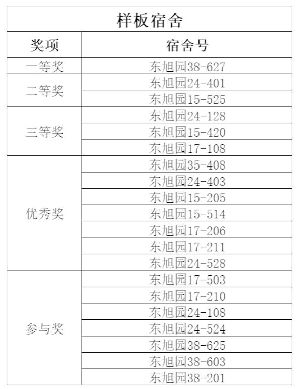 为营造健康文明、积极向上的社区生活环境,太阳成集团tyc7111为此围绕育人、自治、和谐等主题开展了“以样板为尺,筑理想宿舍”样板宿舍评选活动。活动聚焦安全规范、内务卫生、文化建设、学风养成、团队协作等多个维度进行综合考评。树立样板宿舍,充分发挥先进典型的示范引领作用,引导同学们形成互学互进的良好风尚。经过太阳成集团tyc7111学生宿舍自主申请、学院专家评审,现将获奖名单公示如下: