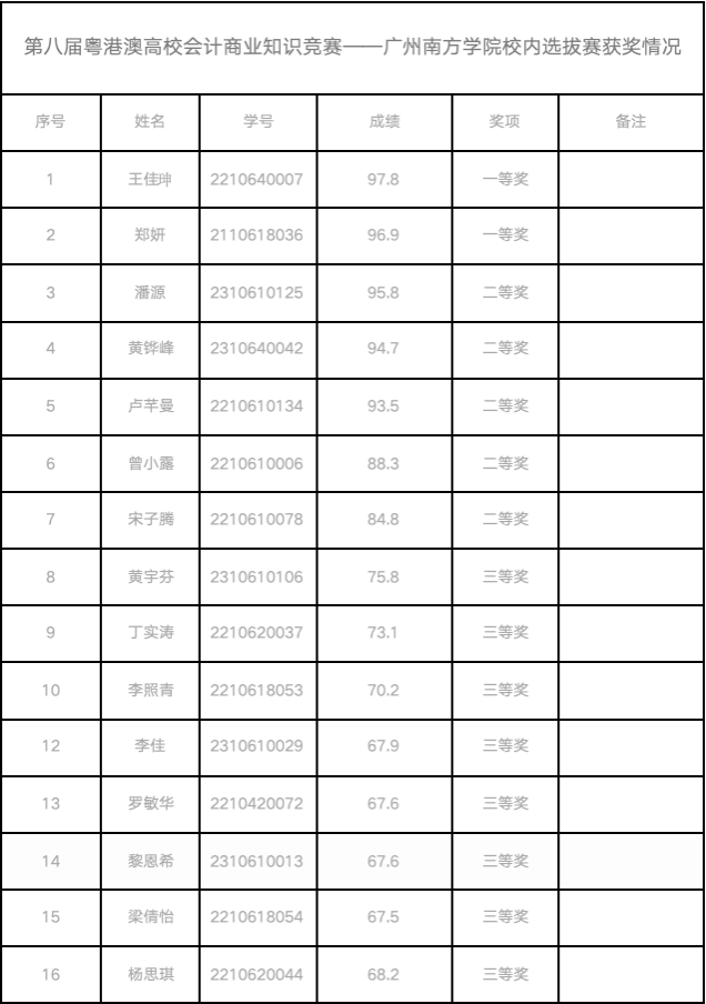 恭喜获奖同学,希望以上同学戒骄戒躁,争取更大进步。也希望学院代表队能够在粤港澳高校会计商业知识竞赛中取得好成绩,为学院争光。
