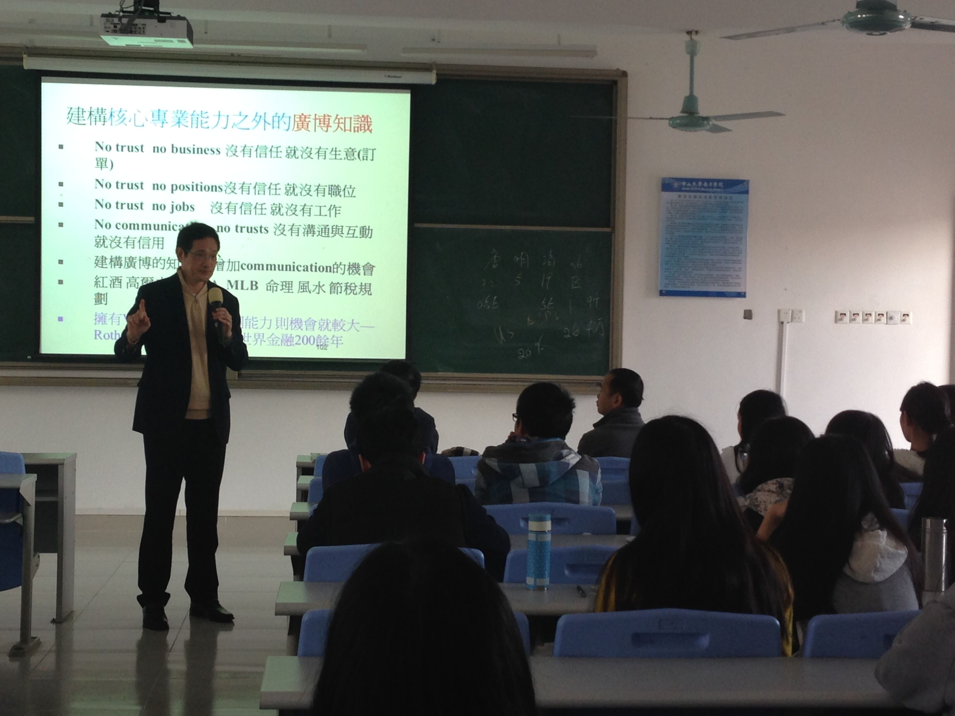 12月15日下午,台湾义守大学李建兴教授做客我系CFO论坛,为我系学子献上了一场以“国际间的区域经济整合潮流——商管学院学生应如何面对与因应”为主题的精彩讲座。其中,系主任助理兼办公室主任宋得福,学工办公室主任陈宇桂等老师出席了本次讲座。